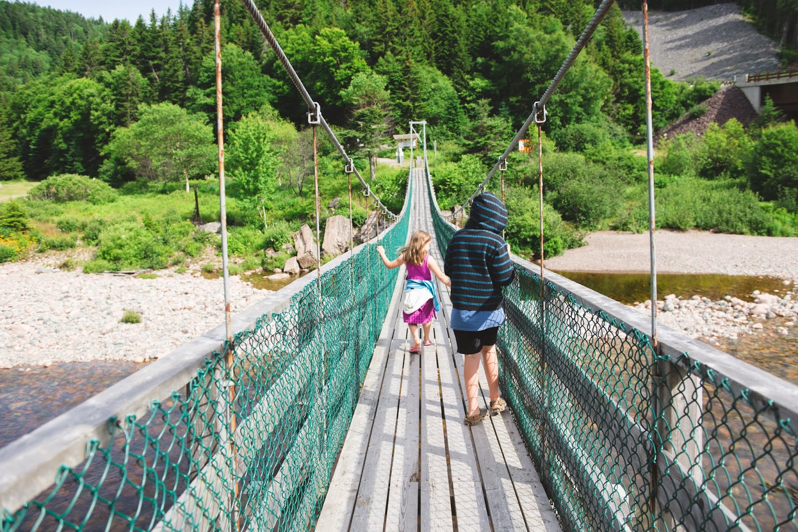 After exploring the sea caves, we unhitched the camper and drove the seven-mile scenic road along the Bay of Fundy in Fundy National Park. We stopped off in several places. This hanging bridge was one.